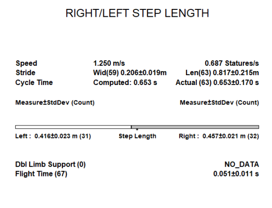 Click done. You should now see a bar chart comparing the left and right step length for your trial.
