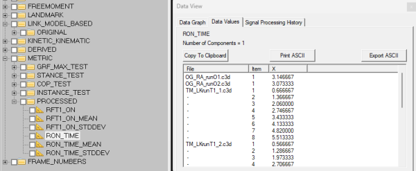 Metric_Signal_Value_At_Event /Result_Metric_Name=RON_TIME /Result_Metric_Folder=PROCESSED /Signal_Types=FRAME_NUMBERS /Signal_Names=TIME /Signal_Folder=ORIGINAL /Event_Name=RON /Generate_Mean_And_Stddev=FALSE /Append_To_Existing_Values=FALSE /Generate_Metric_Length_Metric=FALSE /Retain_No_Data_Values=FALSE ;