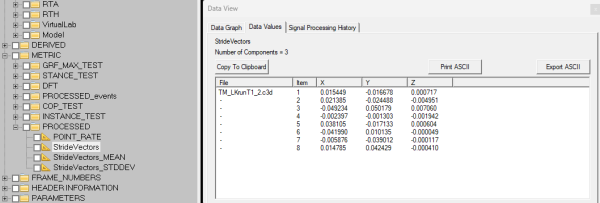 Metric_Vector_Between_Events /RESULT_METRIC_NAME=StrideVectors ! /RESULT_METRIC_FOLDER=PROCESSED /GENERATE_VECTOR_LENGTH_METRIC=FALSE /START_SIGNAL_TYPE=KINETIC_KINEMATIC /START_SIGNAL_NAME=ProxEndPos /START_SIGNAL_FOLDER=RFT /END_SIGNAL_TYPE=KINETIC_KINEMATIC /END_SIGNAL_NAME=ProxEndPos /END_SIGNAL_FOLDER=RFT /EVENT_SEQUENCE=RHS+RHS /EXCLUDE_EVENTS= ! /GENERATE_MEAN_AND_STDDEV=TRUE /APPEND_TO_EXISTING_VALUES=TRUE ! /RETAIN_NO_DATA_VALUES=FALSE ;