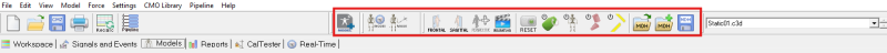 When switched to the Models tab, if a CMZ file with a model is already loaded in, the toolbar extends to show the following options.